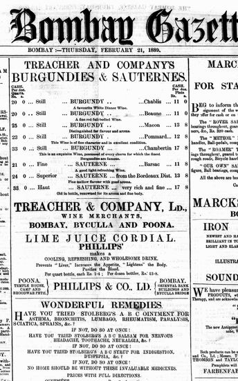 The Bombay Gazette, 21 February 1889