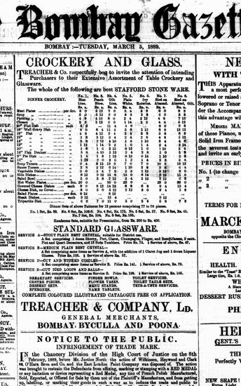The Bombay Gazette, 7 March 1889