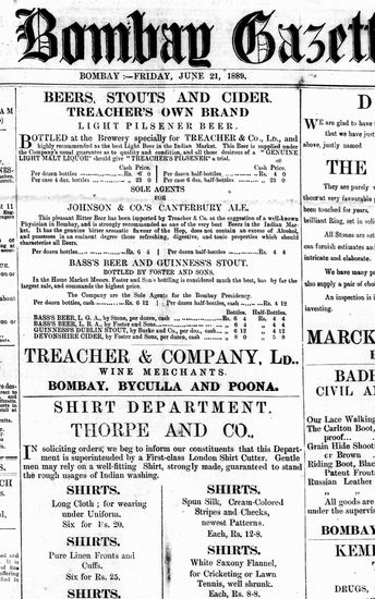 The Bombay Gazette, 21 June 1889