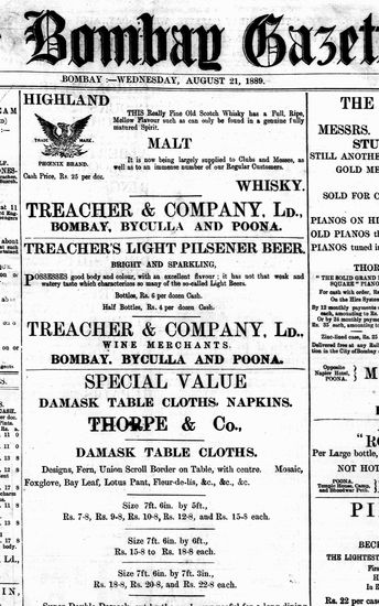 The Bombay Gazette, 21 August 1889