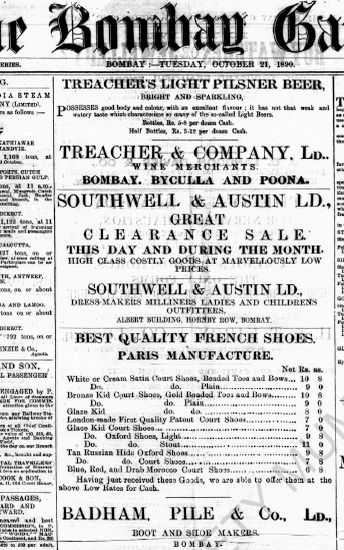 The Bombay Gazette, 21 October 1889