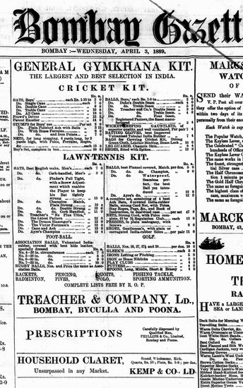 The Bombay Gazette, 3 April 1889