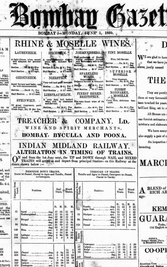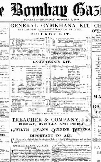 The Bombay Gazette, 3 October 1889