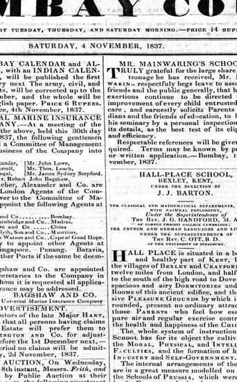 Bombay Courier, 4 November 1837