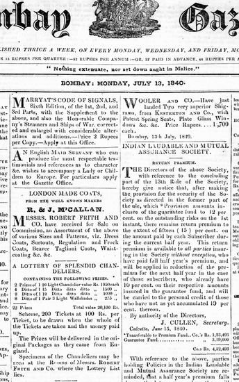 The Bombay Gazette, 13 July 1840