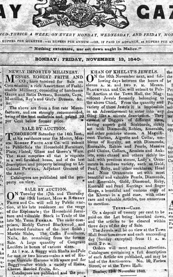 The Bombay Gazette, 13 November 1840