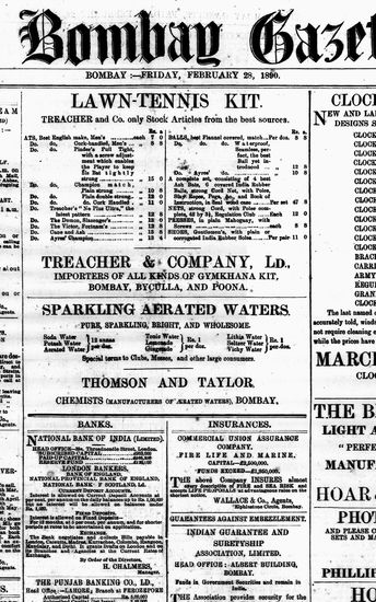 The Bombay Gazette, 28 February 1890