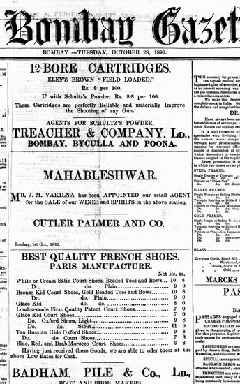The Bombay Gazette, 28 October 1890