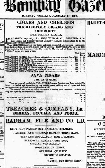 The Bombay Gazette, 14 January 1890