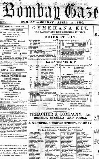 The Bombay Gazette, 14 April 1890