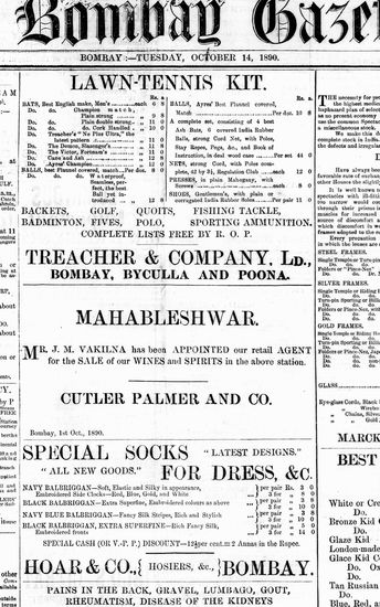 The Bombay Gazette, 14 October 1890