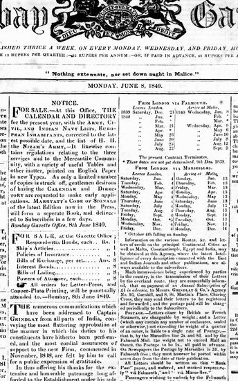 The Bombay Gazette (Weekly Edition), 18 June 1840