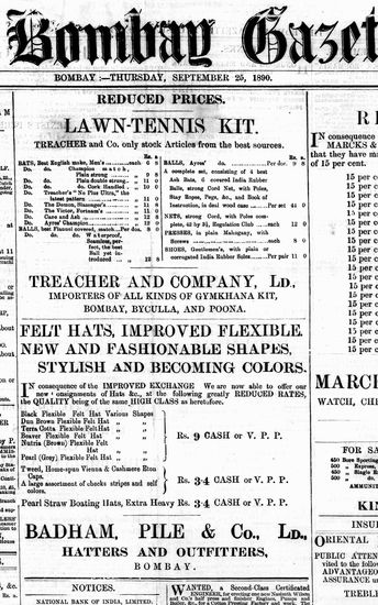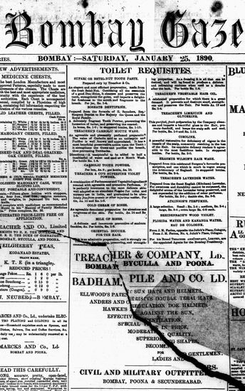 The Bombay Gazette, 18 October 1890