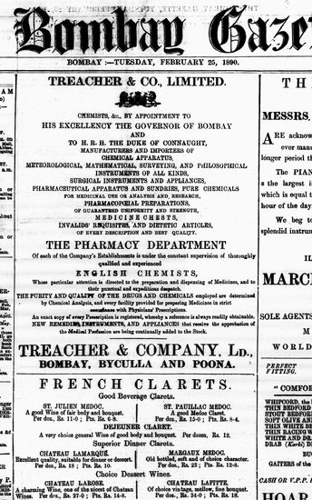 The Bombay Gazette, 25 February 1890