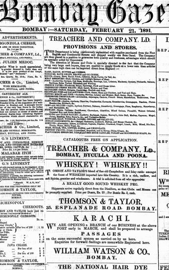The Bombay Gazette, 21 February 1891