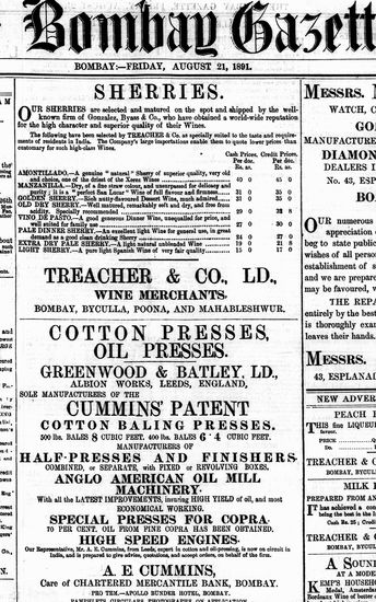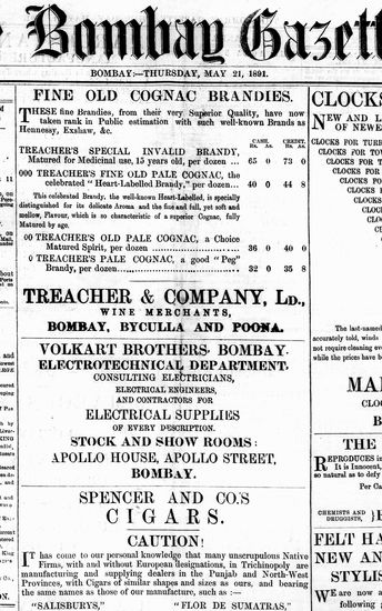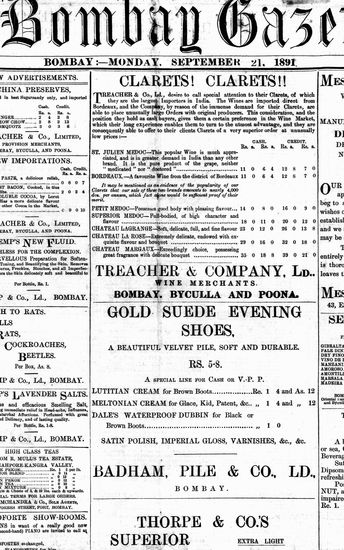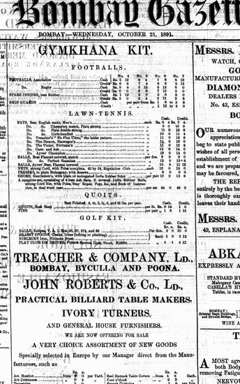The Bombay Gazette, 21 October 1891