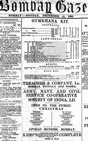 The Bombay Gazette, 21 December 1891