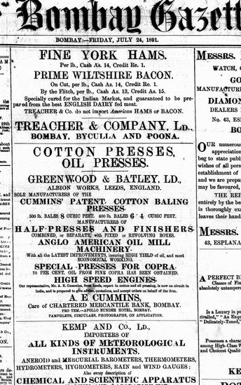 The Bombay Gazette, 24 October 1891