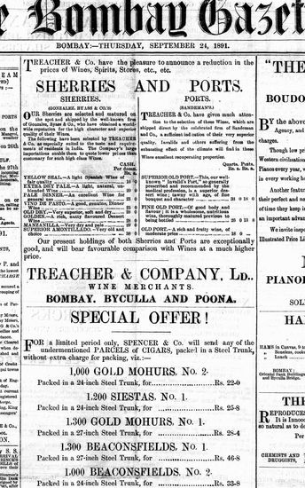 The Bombay Gazette, 24 September 1891