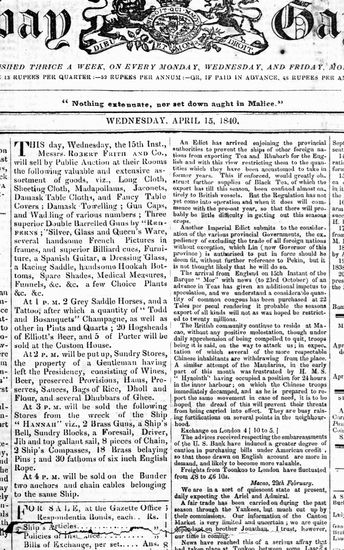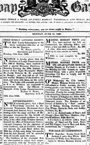 The Bombay Gazette, 3 July 1840