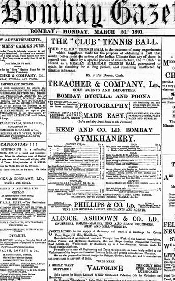 The Bombay Gazette, 30 March 1891