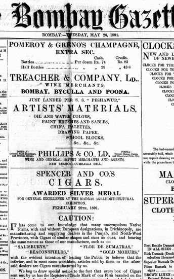The Bombay Gazette, 28 May 1891