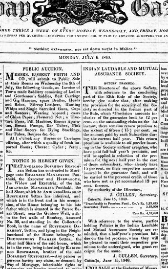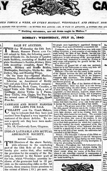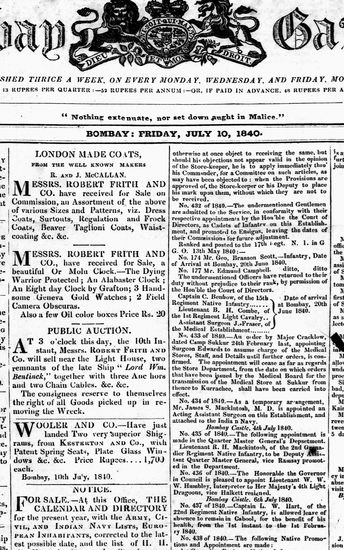 The Bombay Gazette (Weekly Edition), 27 July 1840