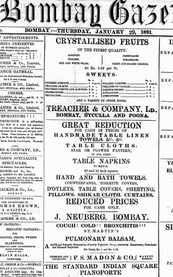 The Bombay Gazette, 29 January 1891