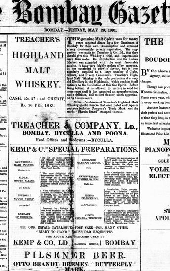 The Bombay Gazette, 29 April 1891