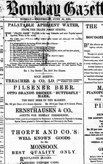 The Bombay Gazette, 10 June 1891