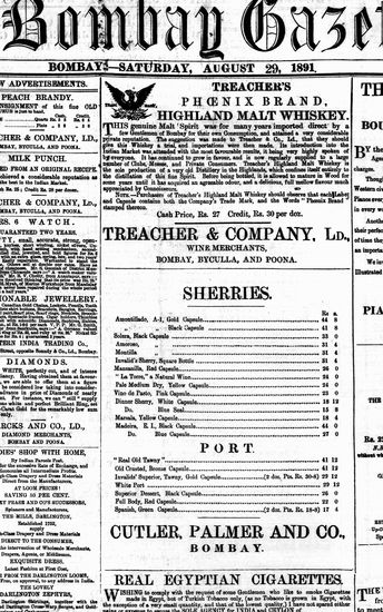 The Bombay Gazette, 29 August 1891
