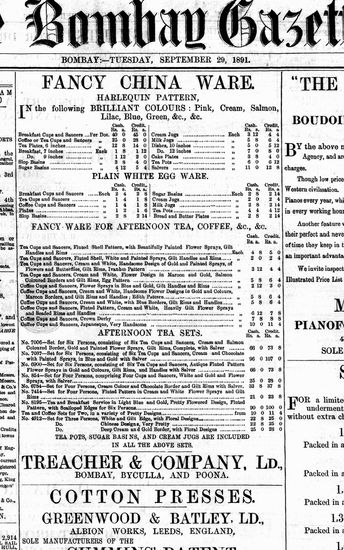 The Bombay Gazette, 29 September 1891