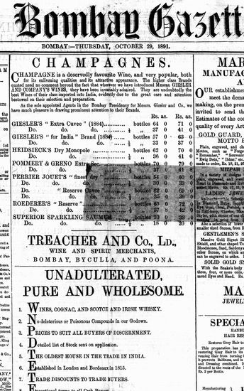 The Bombay Gazette, 29 October 1891