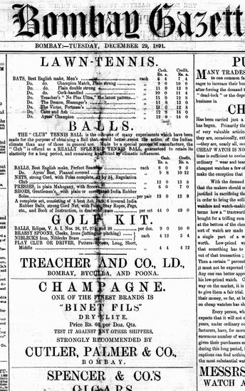 The Bombay Gazette, 29 December 1891
