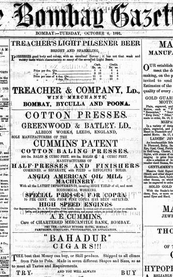 The Bombay Gazette, 10 October 1891