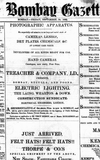 The Bombay Gazette, 30 September 1892