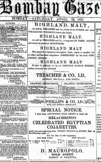 The Bombay Gazette, 29 April 1893