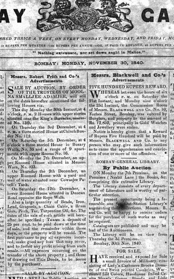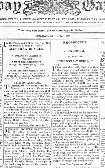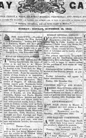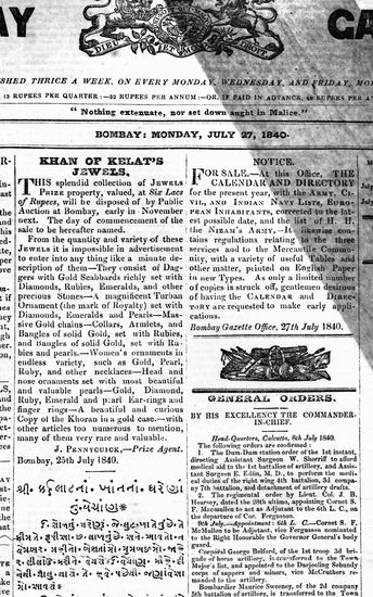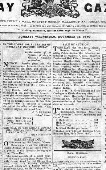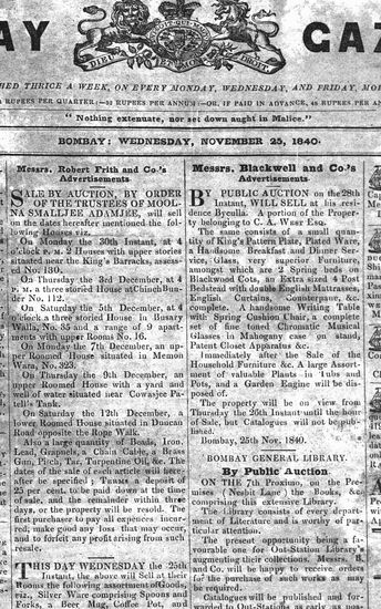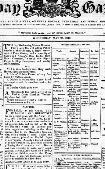 The Bombay Gazette, 27 November 1840