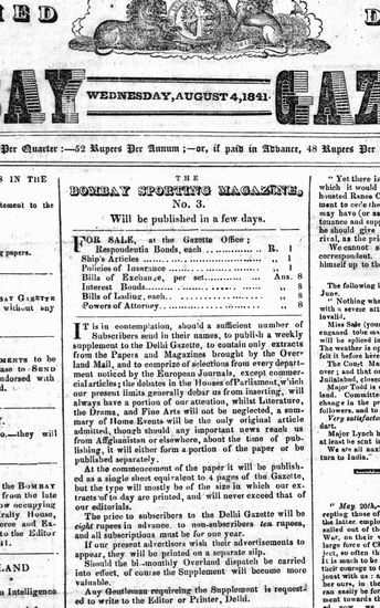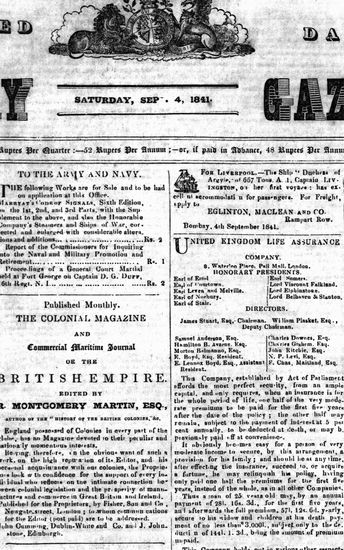 The Bombay Gazette, 4 October 1841