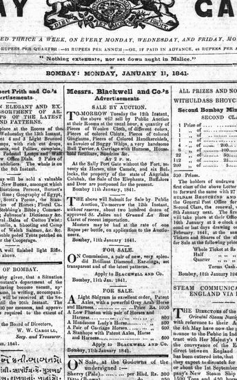 The Bombay Gazette, 11 January 1841