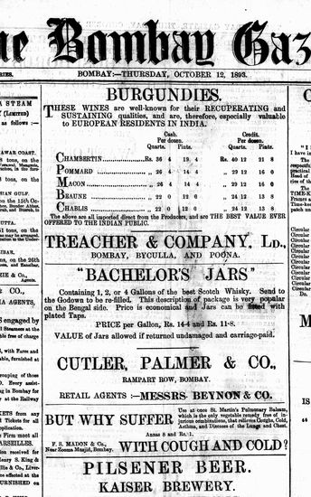 The Bombay Gazette, 12 October 1893