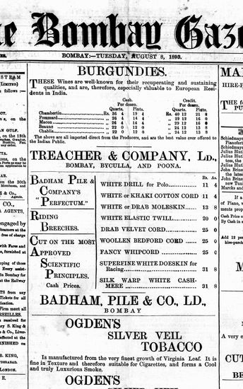 The Bombay Gazette, 8 August 1893