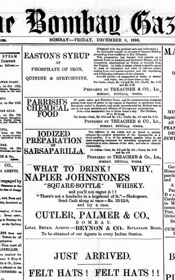 The Bombay Gazette, 8 December 1893