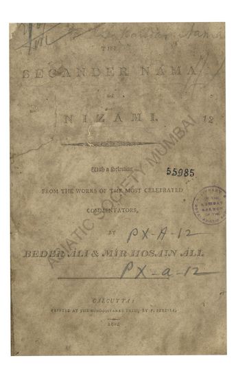 Secander Nama, Comm. By Beder Ali And Mir Hosain Ali