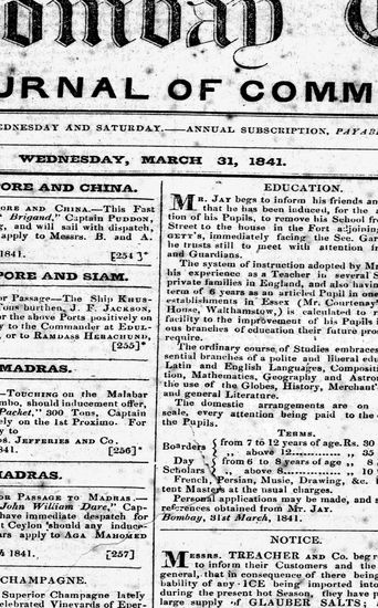 The Bombay Times and Journal of Commerce, 31 March 1841