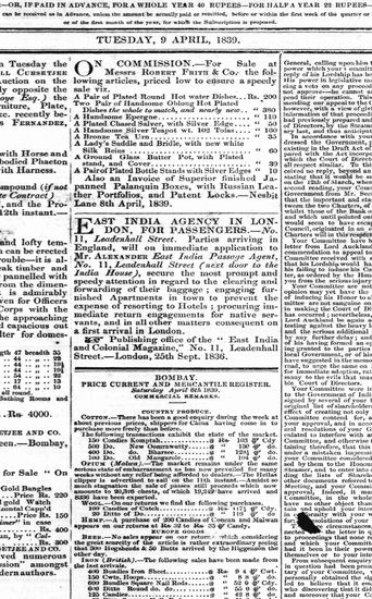 Bombay Courier, 9 April 1839