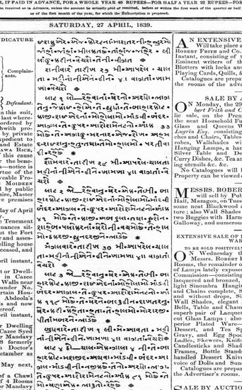 Bombay Courier, 27 April 1839