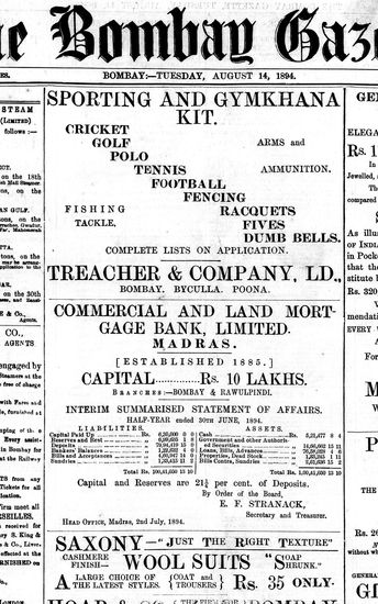 The Bombay Gazette, 14 August 1894