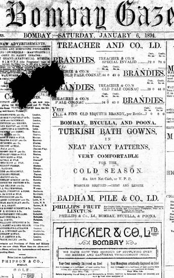 The Bombay Gazette, 6 January 1894