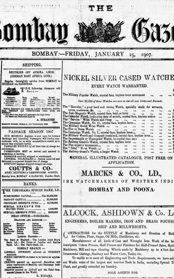 The Bombay Gazette, 25 January 1907